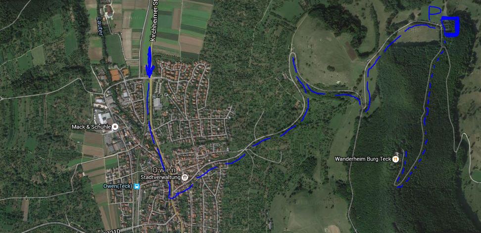 Treffpunkt bei Anfahrt mit dem PKW in 73277 Owen, Parkplatz Hörnle in Halbhöhenlage, über Steigstraße K1248 und Bohlstraße K1249 um 11.30 Uhr