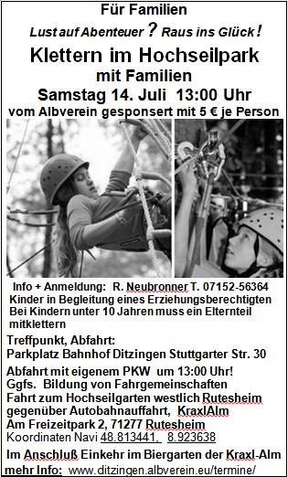Kletternachmittag im Klettergarten Rutesheim Sa., 14.07.2018, farbiges pdf: Inserat Klettern 18_07_14 07152-56364 oder inovoing@gmx.de Uhrzeit: Ganztägig iCalendar Mit dem Laden der Karte akzeptieren Sie die Datenschutzerklärung von Google.Mehr erfahren Karte laden Google Maps immer entsperren zur Übersicht