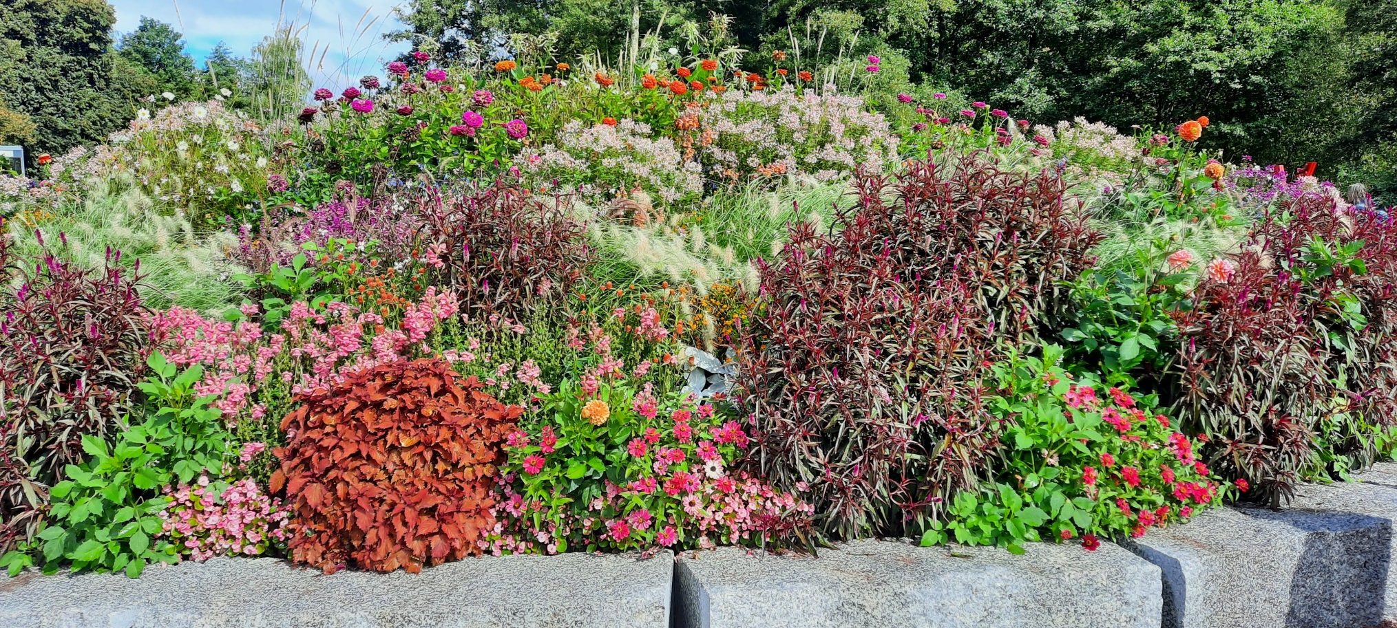 Die andere Hälfte der Ausflügler besuchte in der Zwischenzeit die Gartenschau im „Tal X“. Wie erwartet, blühten neben vielen weniger bekannten Arten die Astern, Dahlien, Zinien „um die Wette“ und erfreuten die Herzen. Während eines Regenschauers flüchtete man einfach unter eines der angebotenen Dächer. Die Geburtstagsgäste unserer Jubilarin freuten sich vor allem an ihrem Gemeinschaftserlebnis. Alle kehrten am Ende zufrieden zurück.
