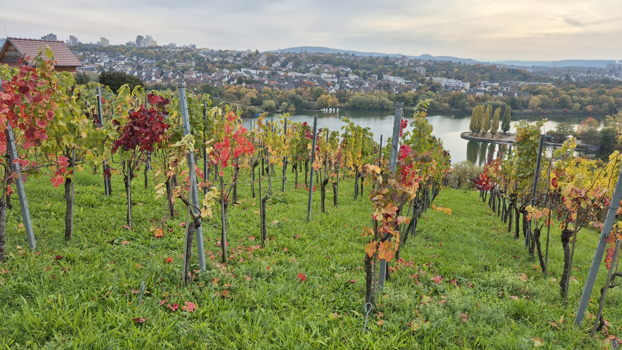 Nun ging es durch einen Weinberg zum Neckar hinunter, dann wieder über die Brücke in den anderen Stadtteil und zum Bahnhof, von wo wir die Heimfahrt antraten.